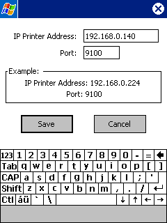 Network Setup, Troubleshooting and Testing Network IP Printer: A "Network IP Printer" is a printer that is directly connected to the network and has its own IP address (it does NOT rely on being connected to a Host Computer). To print to a Network IP printer, at the "Select Printer" screen, select the correct Printer type and select the "Network: IP Printer" list item (below left). Tap the "Set IP Printer Addr" button to enter the printer's IP address (below right) and Port number (if different from the default 9100), tap "Save" button. You can then tap "Start Printing" to begin printing to the IP printer.