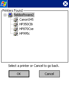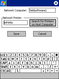 Tap the "Search for Printers on Host Computer" button to look for shared printers on the specified Host Computer. Any printers found will be listed (below left) and can be selected for printing. Tap OK and see network printer path (below right). Tap Save. Note: If the "Search" process responds with an "Unable to connect to computer or find network printers" error message, double check that you have entered the correct Network Computer name. You should also go to the File Explorer and make sure you are able to access the networked computer from File Explorer. If not, visit Network Troubleshooting