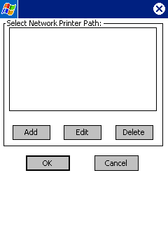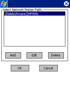 Initially, you will not have any network printer paths set up. Tap "Add" button (below left). Enter the Network Computer name (below right).