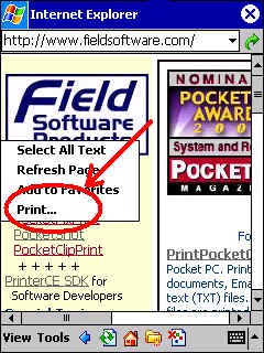 Print fully formatted HTML/Web pages from within Pocket Internet Explorer (PIE).