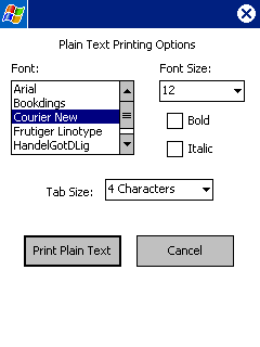 menu, all Pocket Word documents will be printed using Plain Text