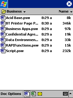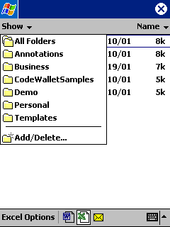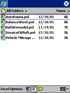 on the Excel icon to get a list of Pocket Excel (PXL) spreadsheets to
