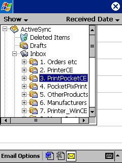 From the Email List screen, tap the Email Options menu then Email