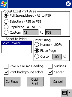 PrintPocketCE prints out Pocket Excel spreadsheets, Pocket Word